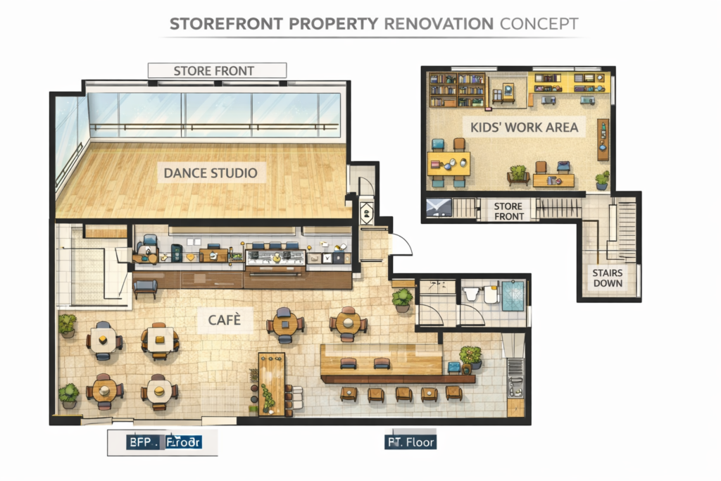 MAP OF THE FLOOR PLAN FOR BUILDING RENOVATIONS– *please contact for property address*